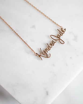 Kyndra jade signature necklace. Stainless steel chain lead and nickel free. Chain is 19" long. available in 3 finishes.