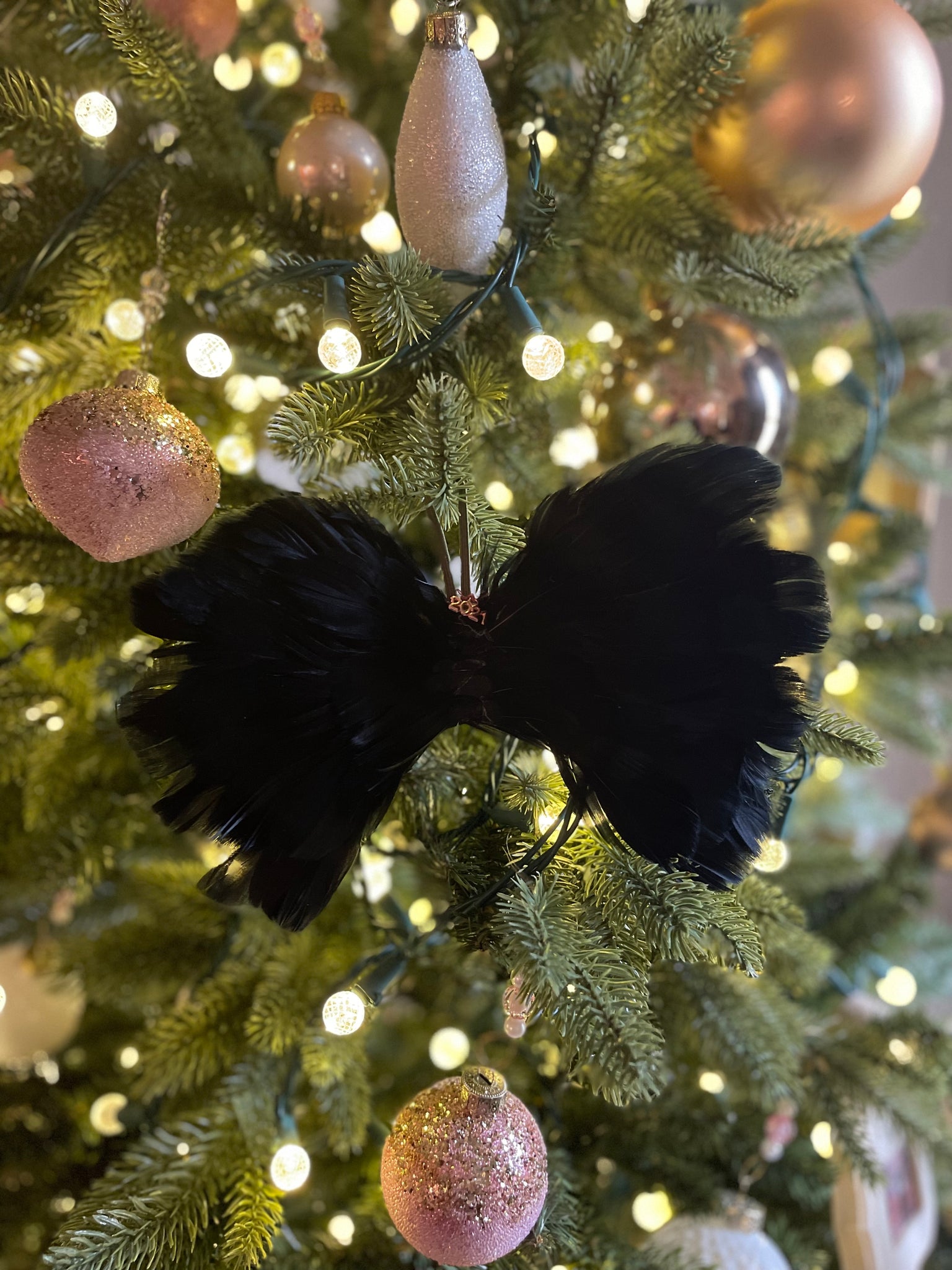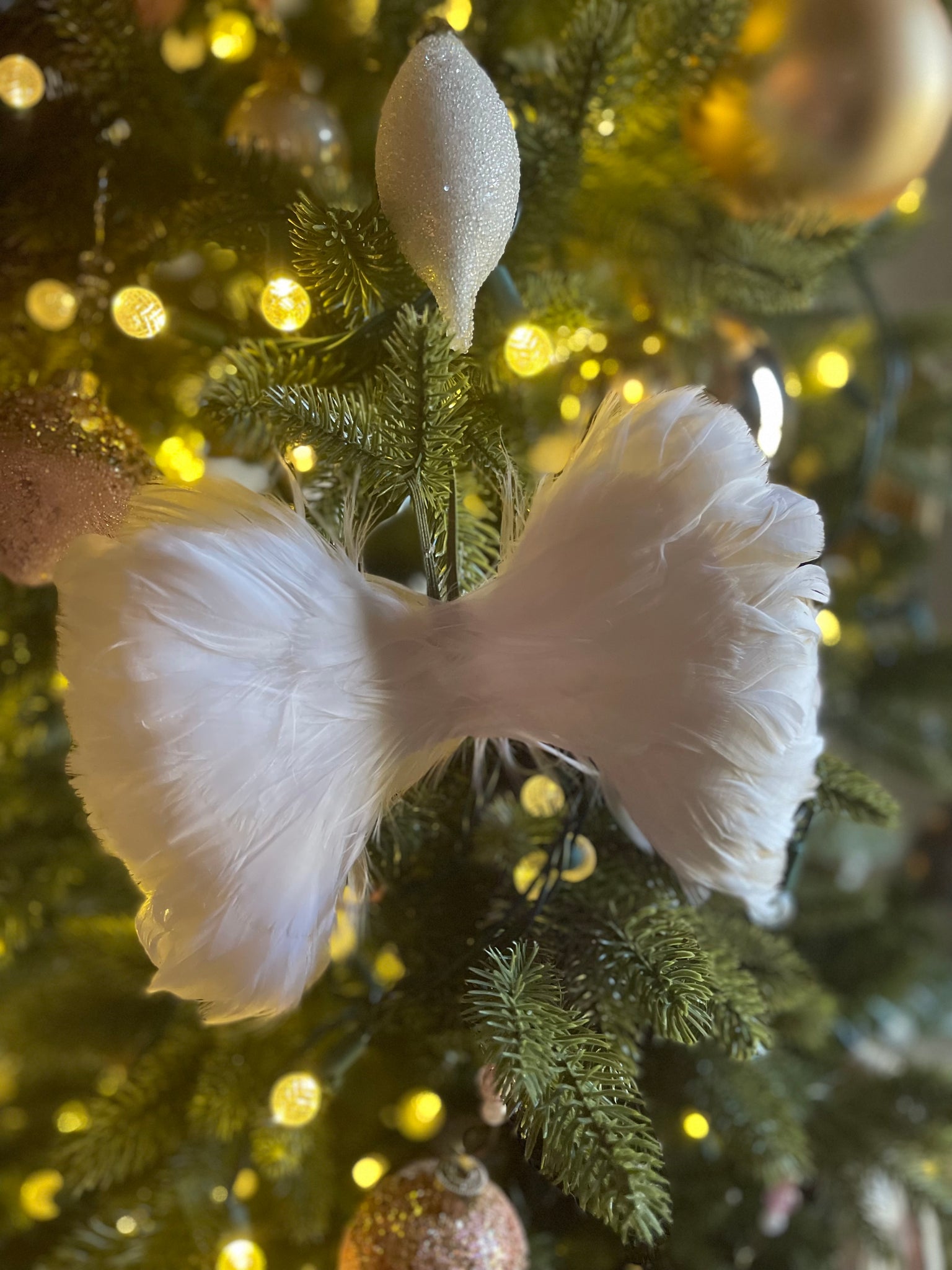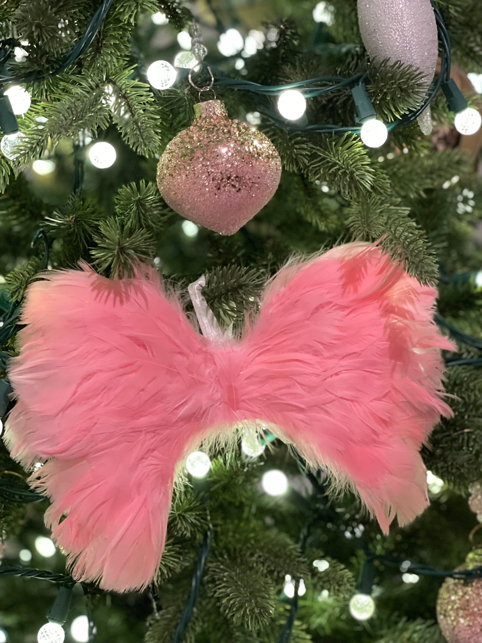 Kyndra Jade handmade angel wing ornaments. A handmade ornament that will make a statement on any tree. Ornaments have a rose gold charm with 2024. If you need a custom year please let us know.