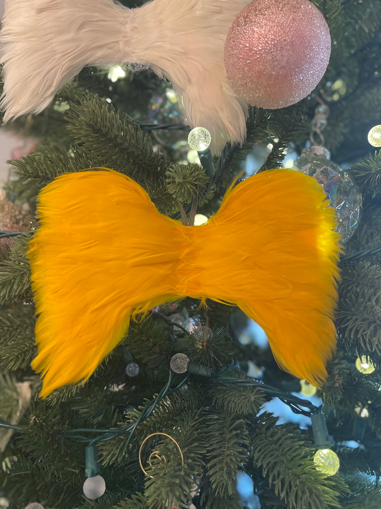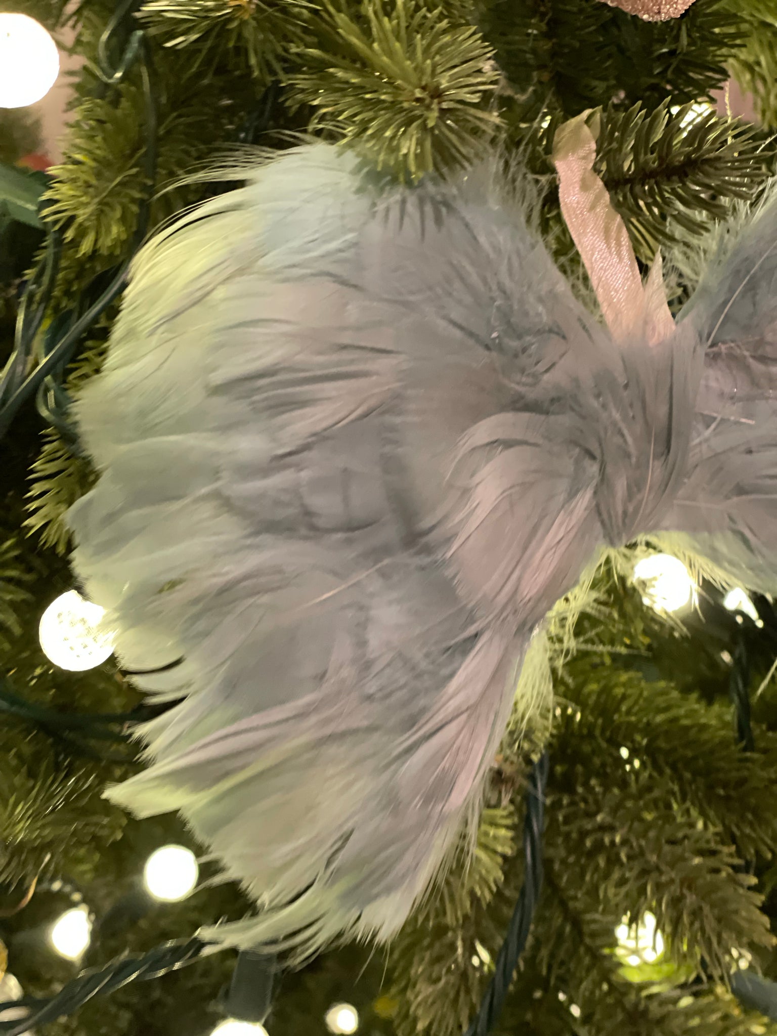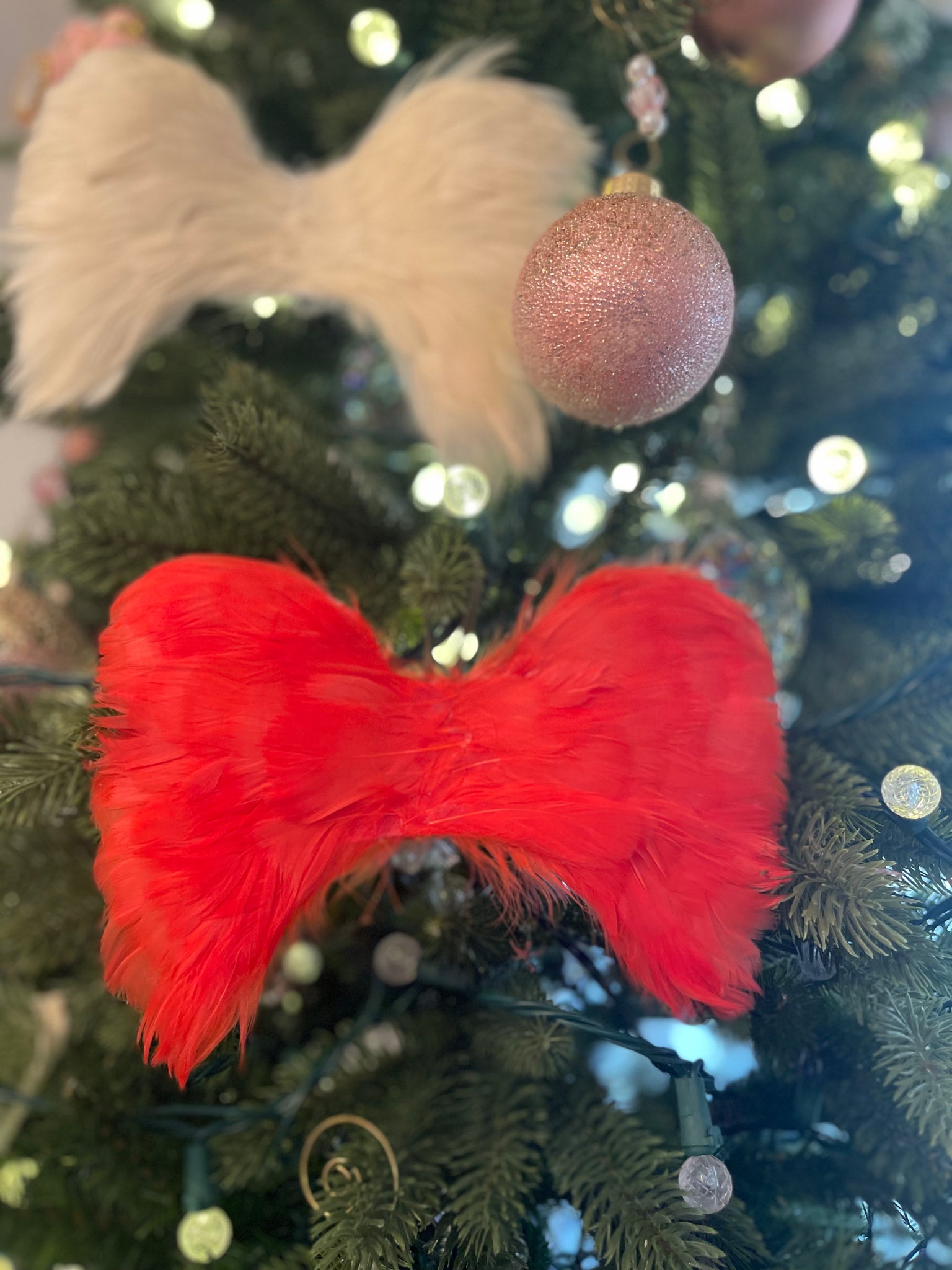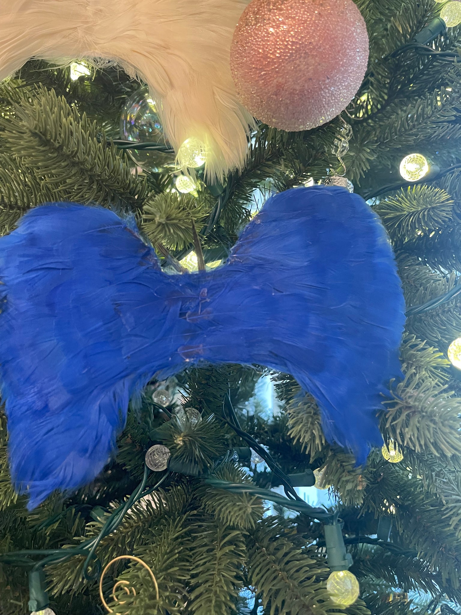 Kyndra Jade handmade angel wing ornaments. A handmade ornament that will make a statement on any tree. Ornaments have a rose gold charm with 2024. If you need a custom year please let us know.