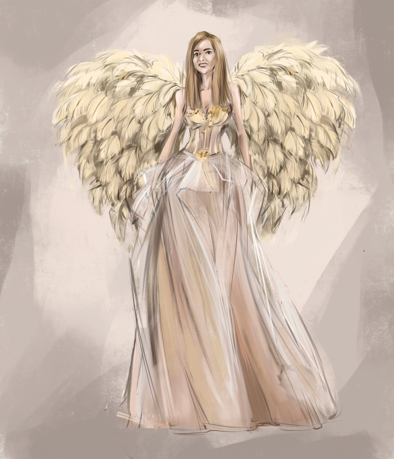 Customer to provide images of themselves that are not copyrighted. (I recommend submitted a few of your favorite selfies) choose the gown and wing inspiration from our collection and let the artist do the work! This is a custom sketch and no alterations or changes to the art will be made. All sales final.