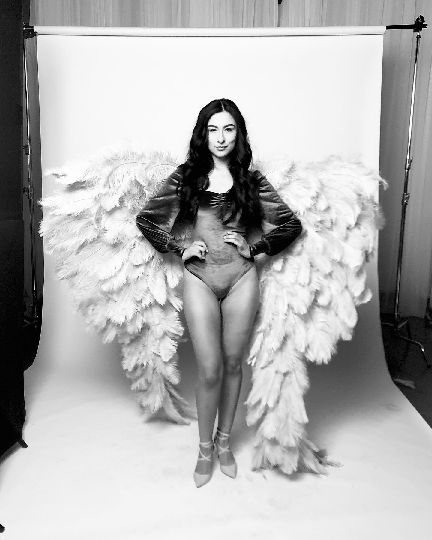 Bianca is a luxurious light blue ostrich feathers wing. These handmade angel wings are perfect for your boudoir photoshoot, cosplay, displays and more.  Released  on the Omaha Fashion Week Runway. Due to the custom handmade nature of this product will vary.  Kyndra...Read more