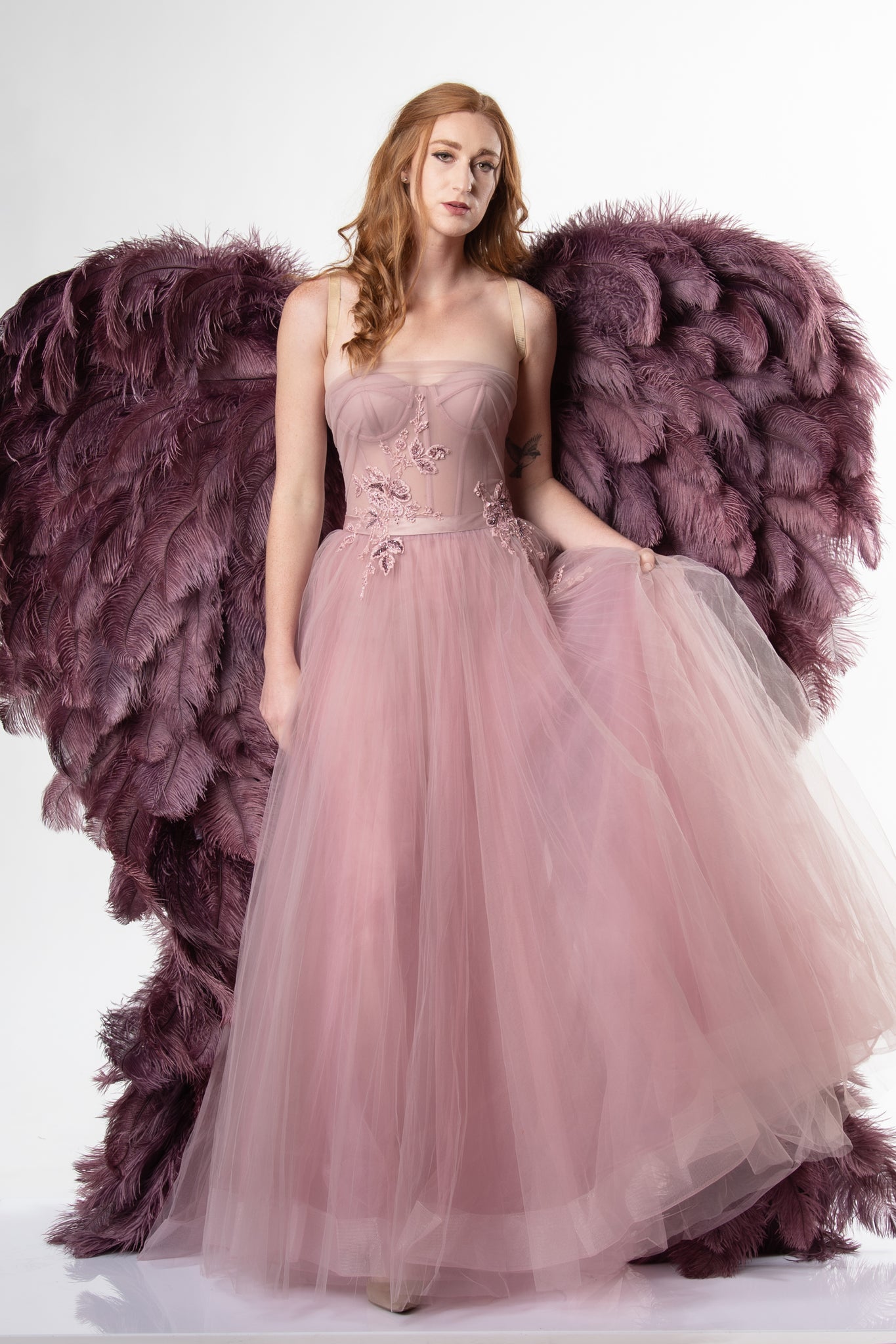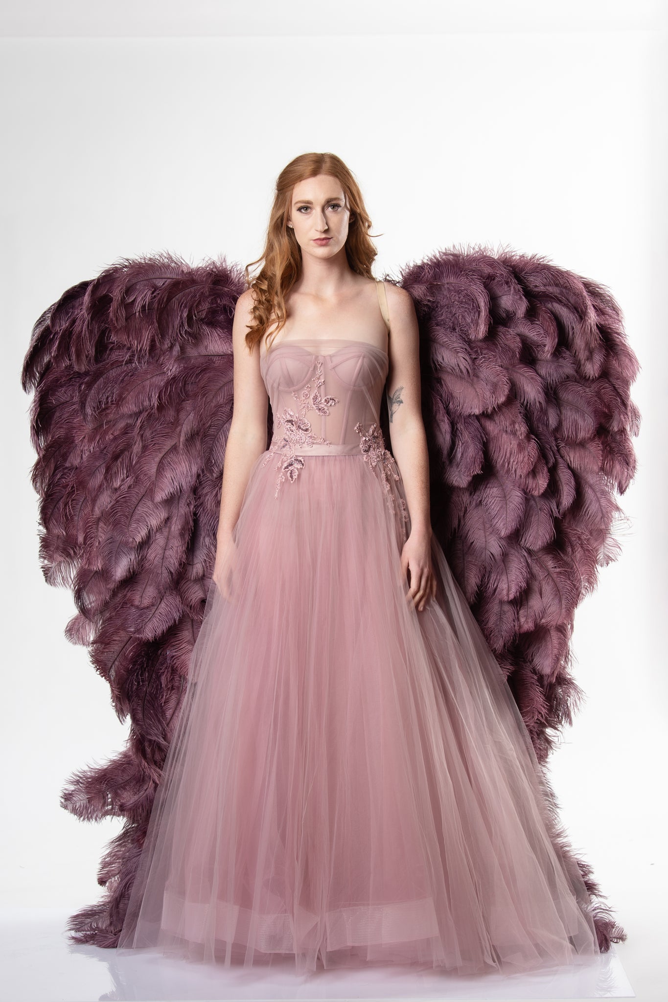 Model is shown wearing the Viola sized angel wings sold separately.Released from the Kansas City Fashion Week runway.