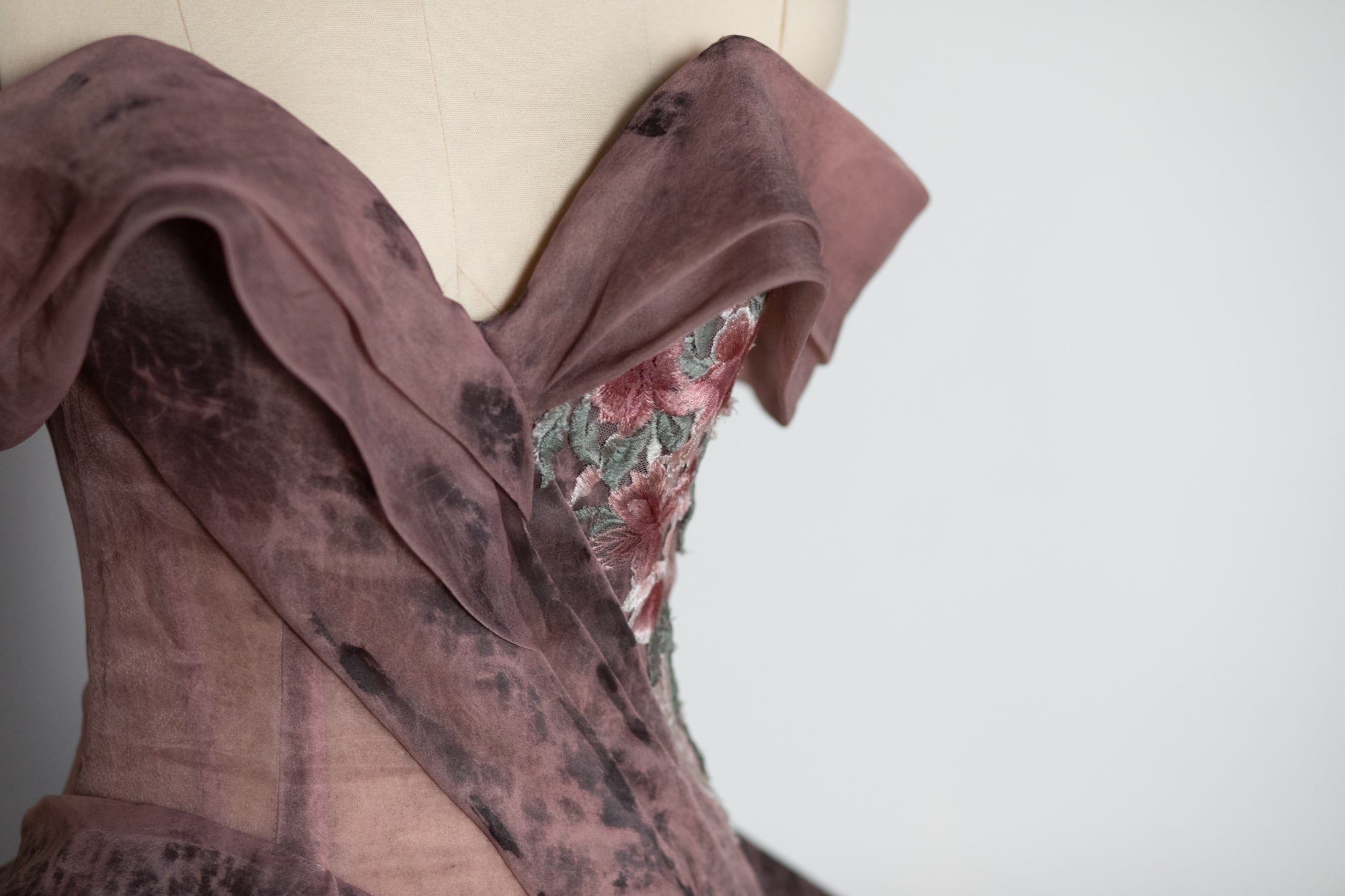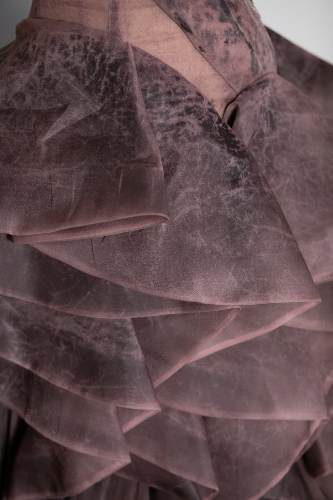 The Rebecca  Gown is an  brown tulle gown featuring a hand painted technique giving the fabric a leather texture. hand embroidered and beaded details. Shown one the Christian Michael Runway in 2022. Now available for order.   Please allow 12-14...Read more