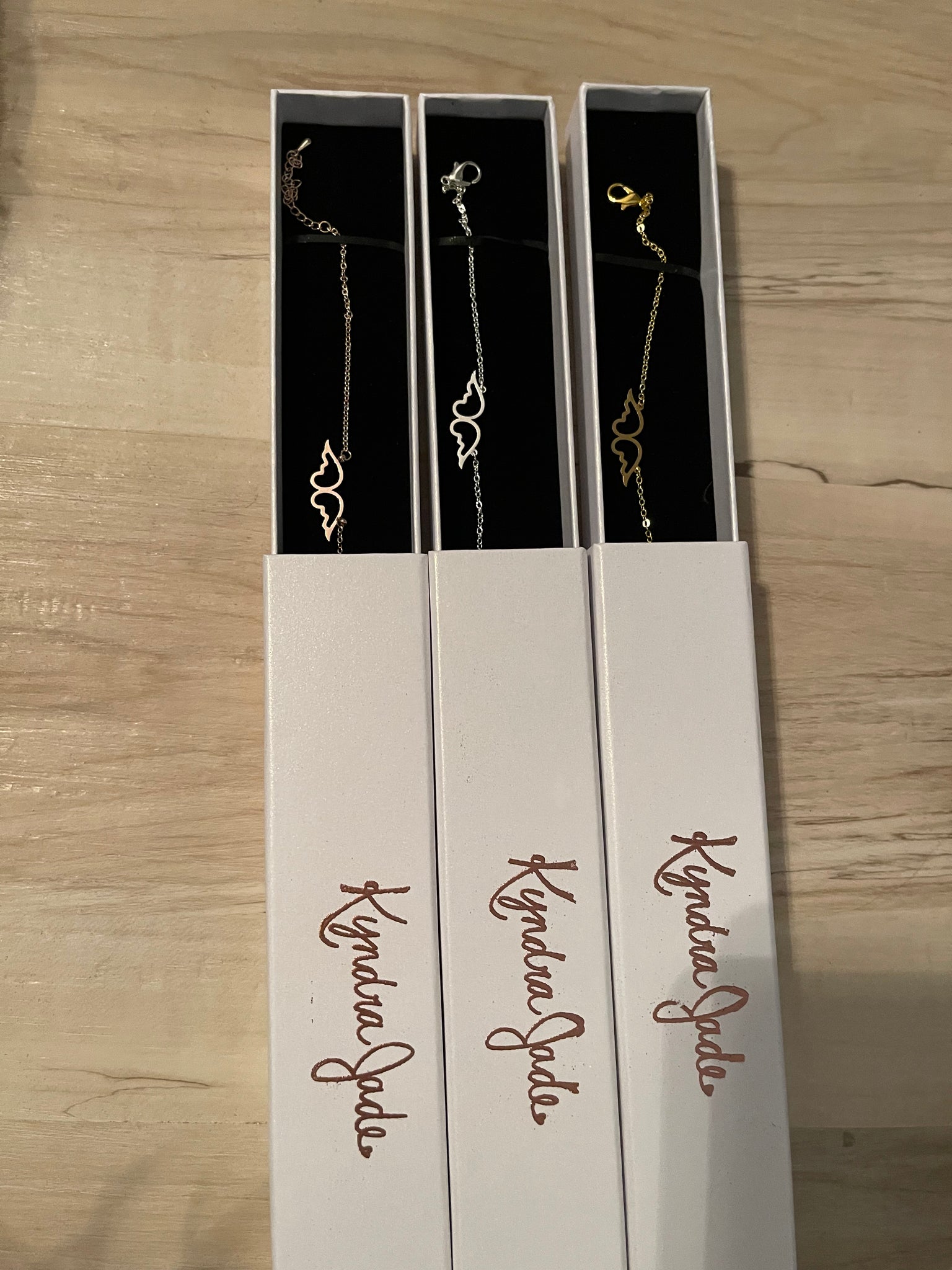 Sweet little angel of mine necklace is a dainty angel wing stainless steel cutout pendant with chain 1.1 in w x .33 in Stainless steel chain lead and nickel free. Chain is approximately 9.5" . available in 3...Read more