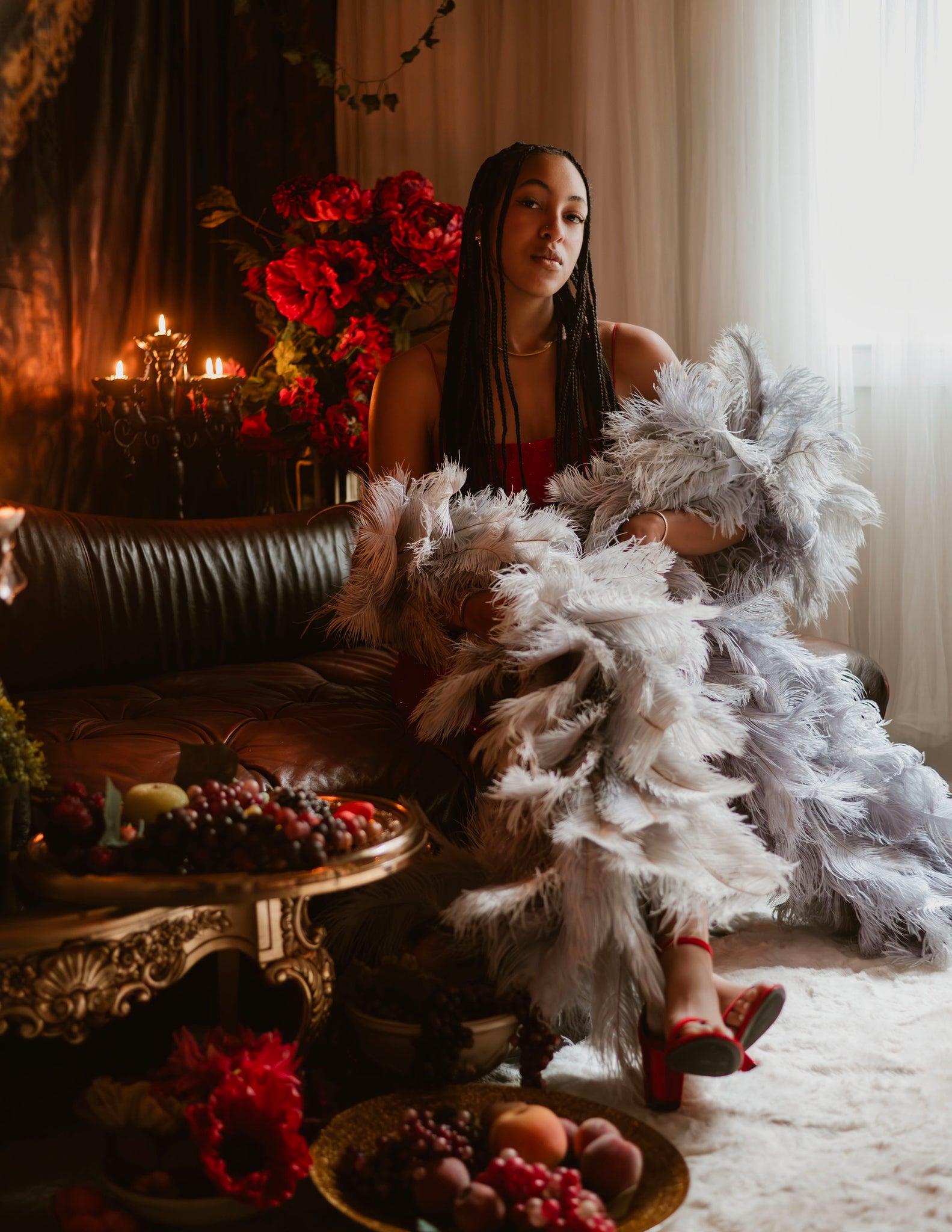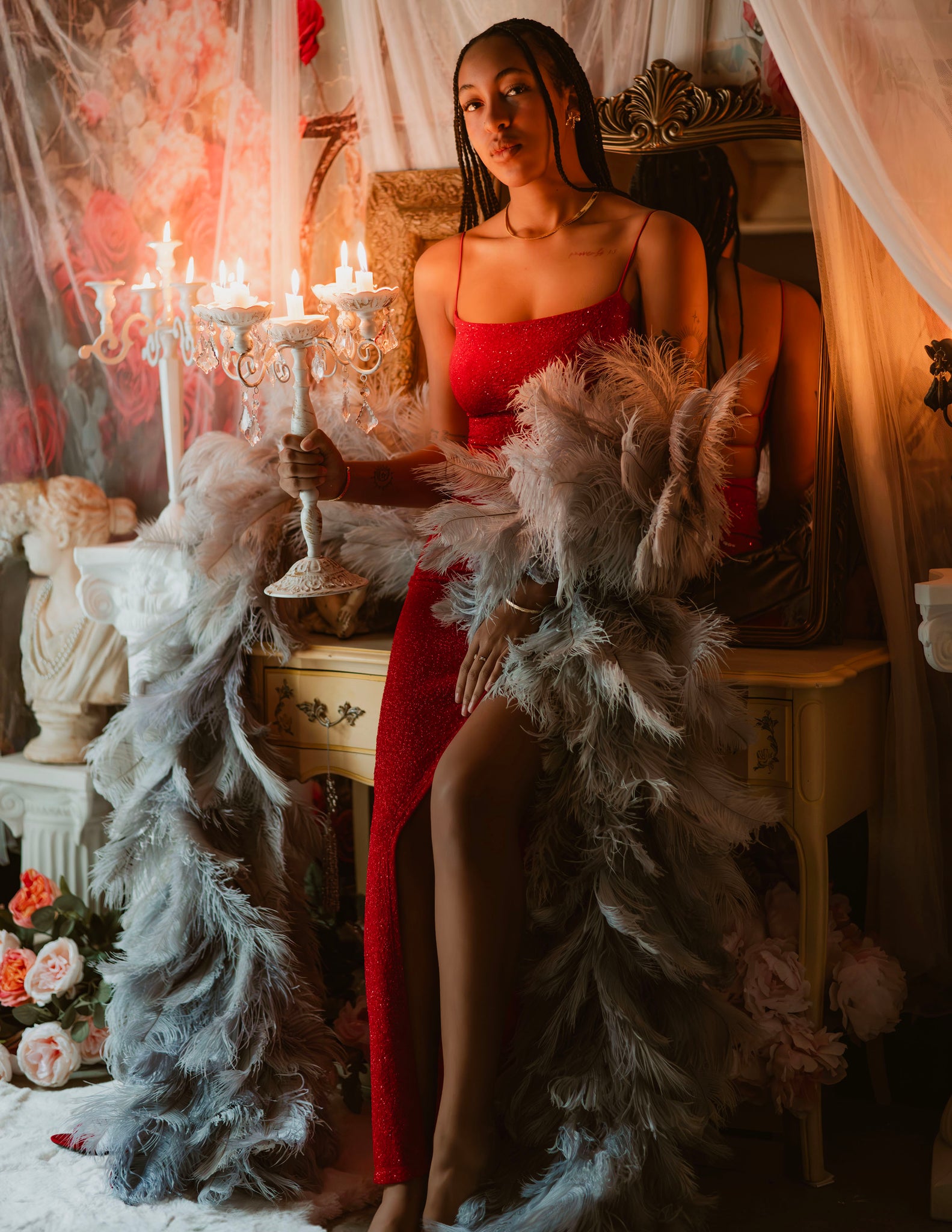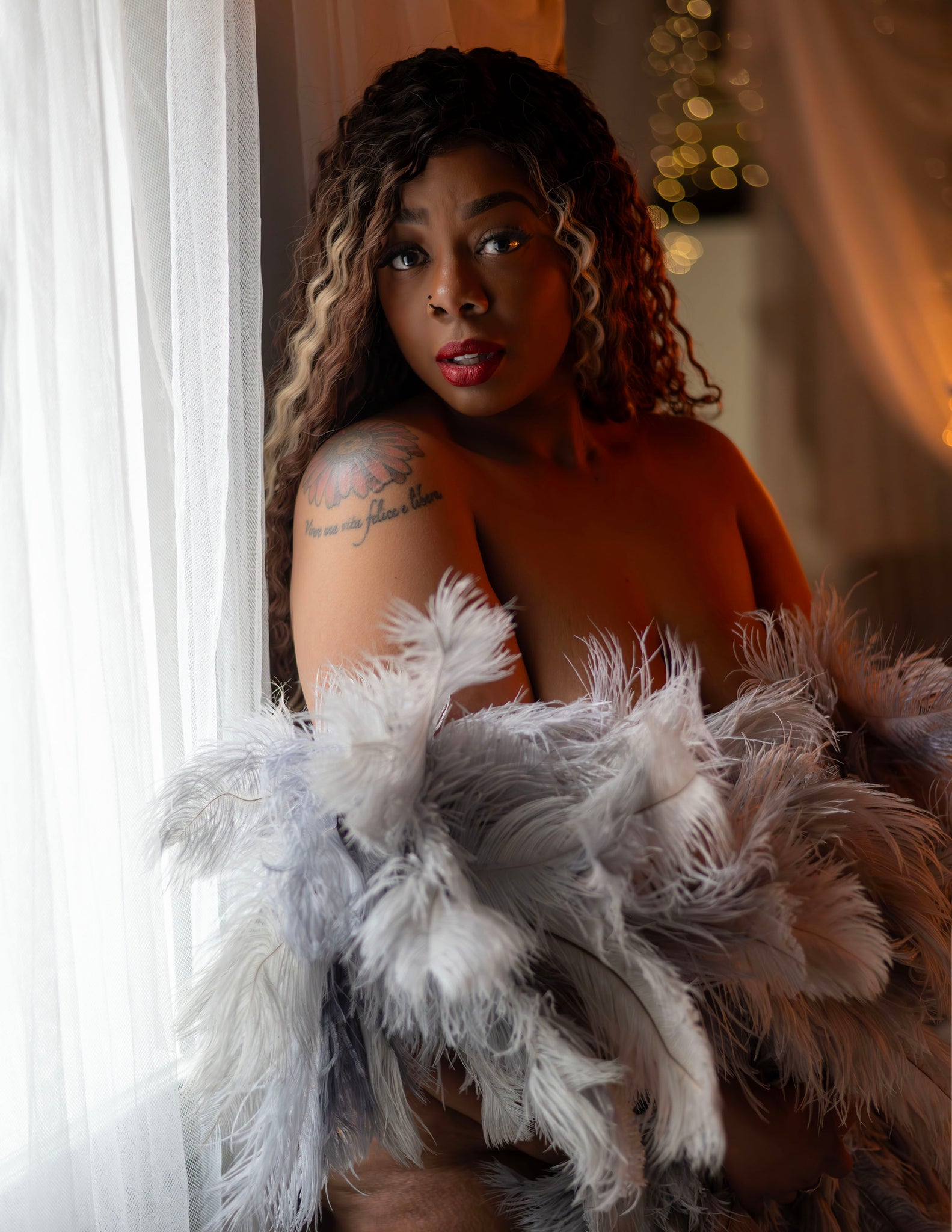 The Feather Boa. I noticed many photographers and clients were using the lower parts of their angel wings to snuggle in for a few poses and decided to make a unique boa. If you want a flexible luxurious posing tool for your boudoir studio or maybe your over the angel wing trend.. can’t relate 😉 Three sizes and you can have the feathers all the way if your wearing in a burlesque setting on out and about or photographers can choose to have a “gap” the same cushion our wings have so models can comfortable lay on the boa without damaging all the feathers! Choose from any ostrich feather color available or have a custom color created!