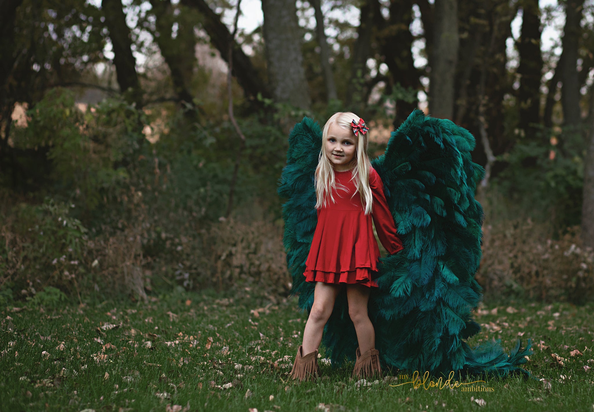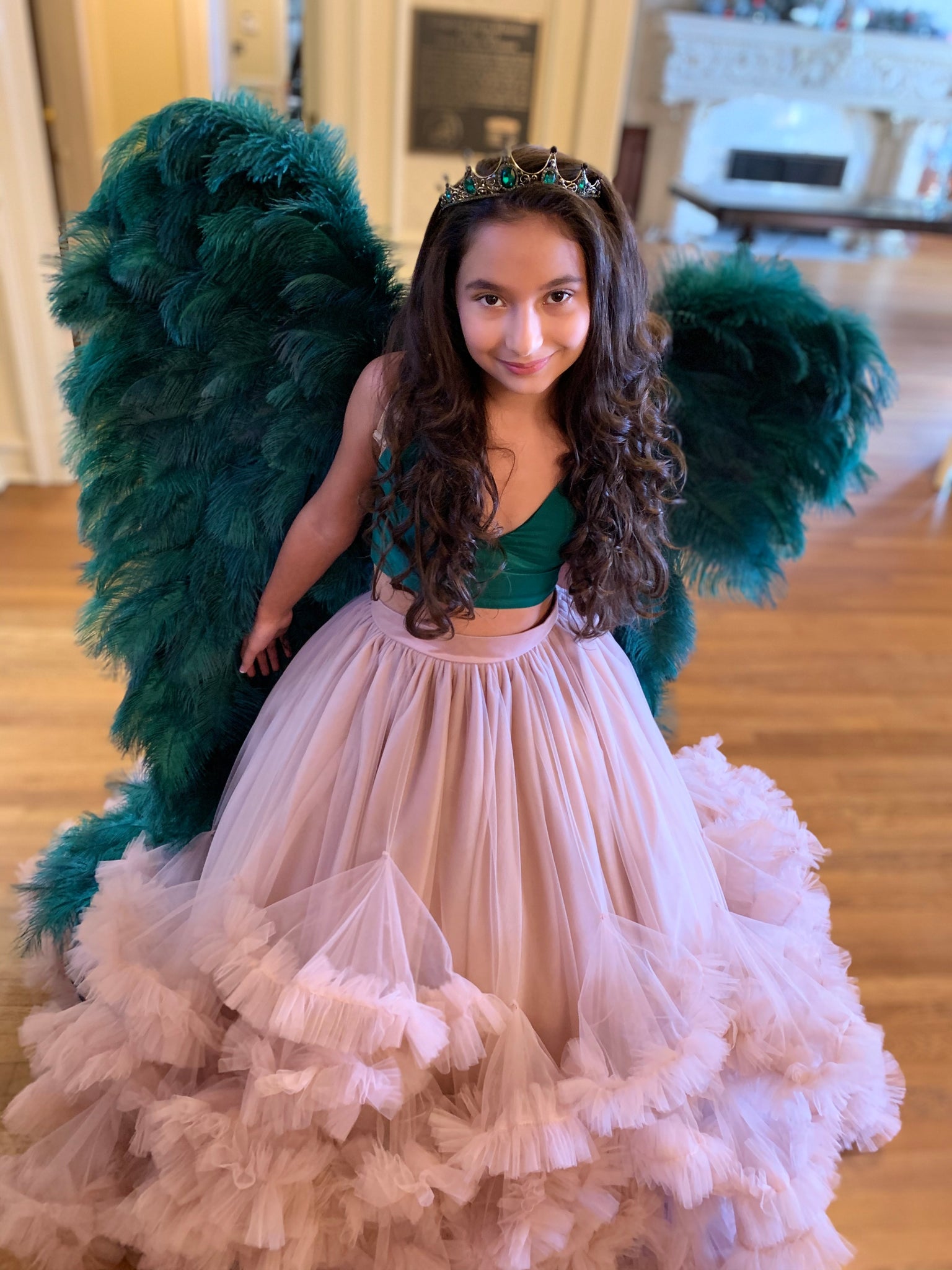 The Brinklee Angel wings are a tween sized royal wings featuring a flowing train of feathers. A custom emerald color. Due to the custom handmade nature of this product will vary. Kyndra Jade will combine and place the feathers and all elements to the artists' preference. Every angel wing is handmade by Kyndra Jade in our Kansas City Studio. If you'd like to watch wings made join us live during a "Wing Wednesday" or "Feather Friday" live stream. No two are made alike. Tween Size Shown. Additional listings for each size can be found.