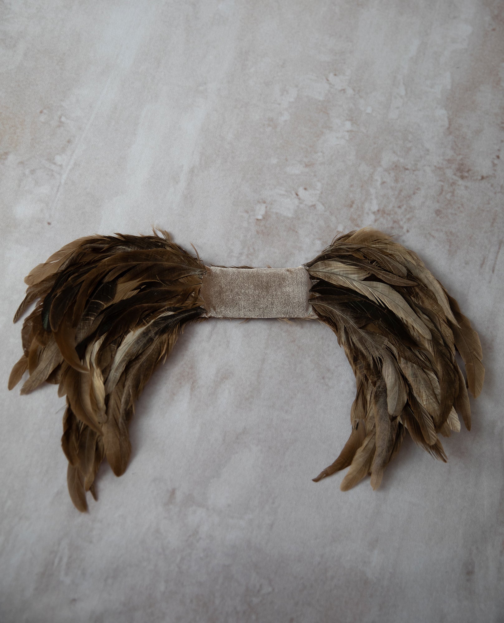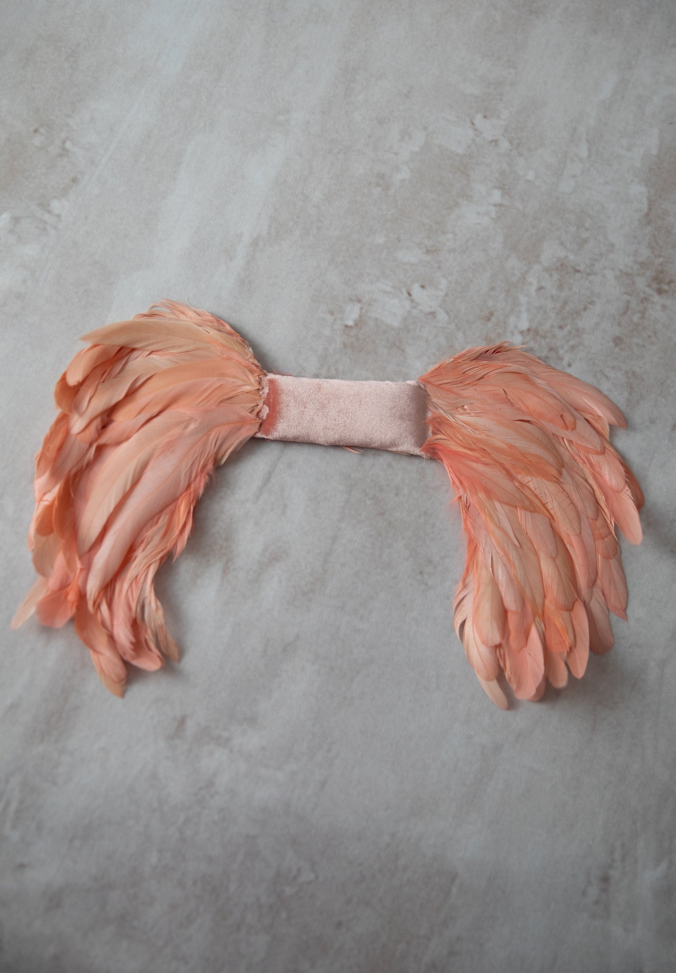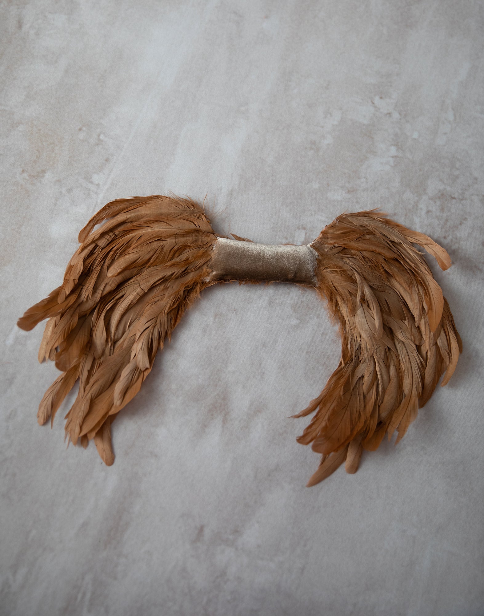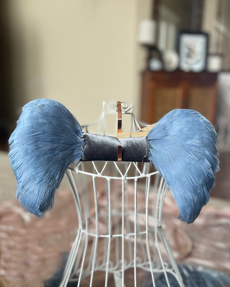 Due to the custom handmade nature of this product will vary. Kyndra Jade will combine and place the feathers to the artists' preference. Each angel wing is handmade by Kyndra Jade in our Kansas City Studio. If you would like to see part of the process join a livestream on "wing Wednesday" or "feather Friday".