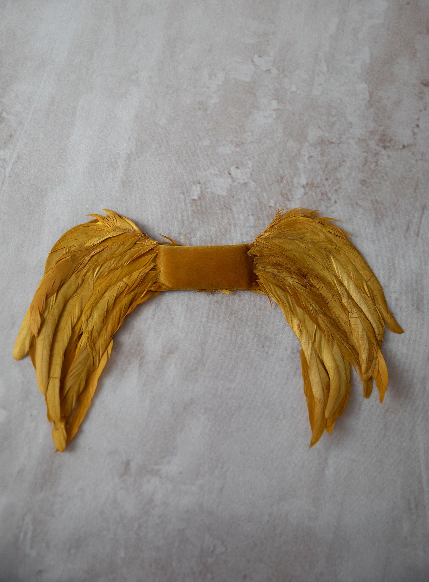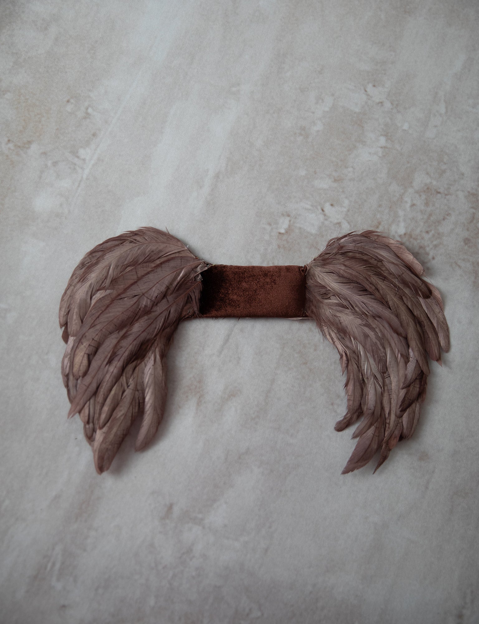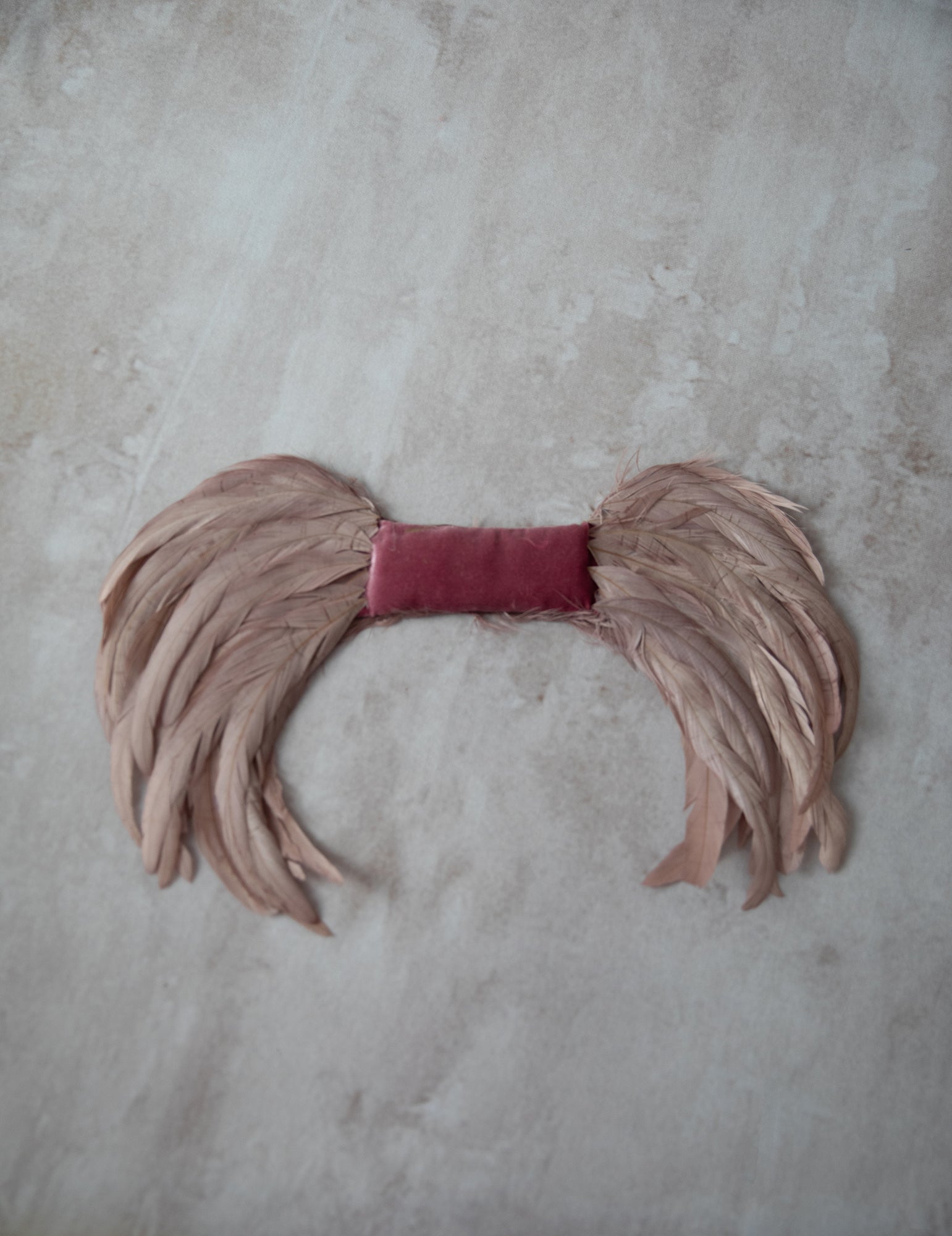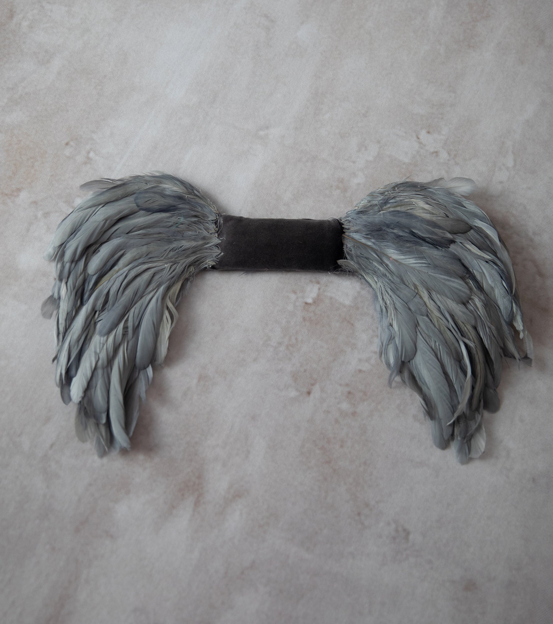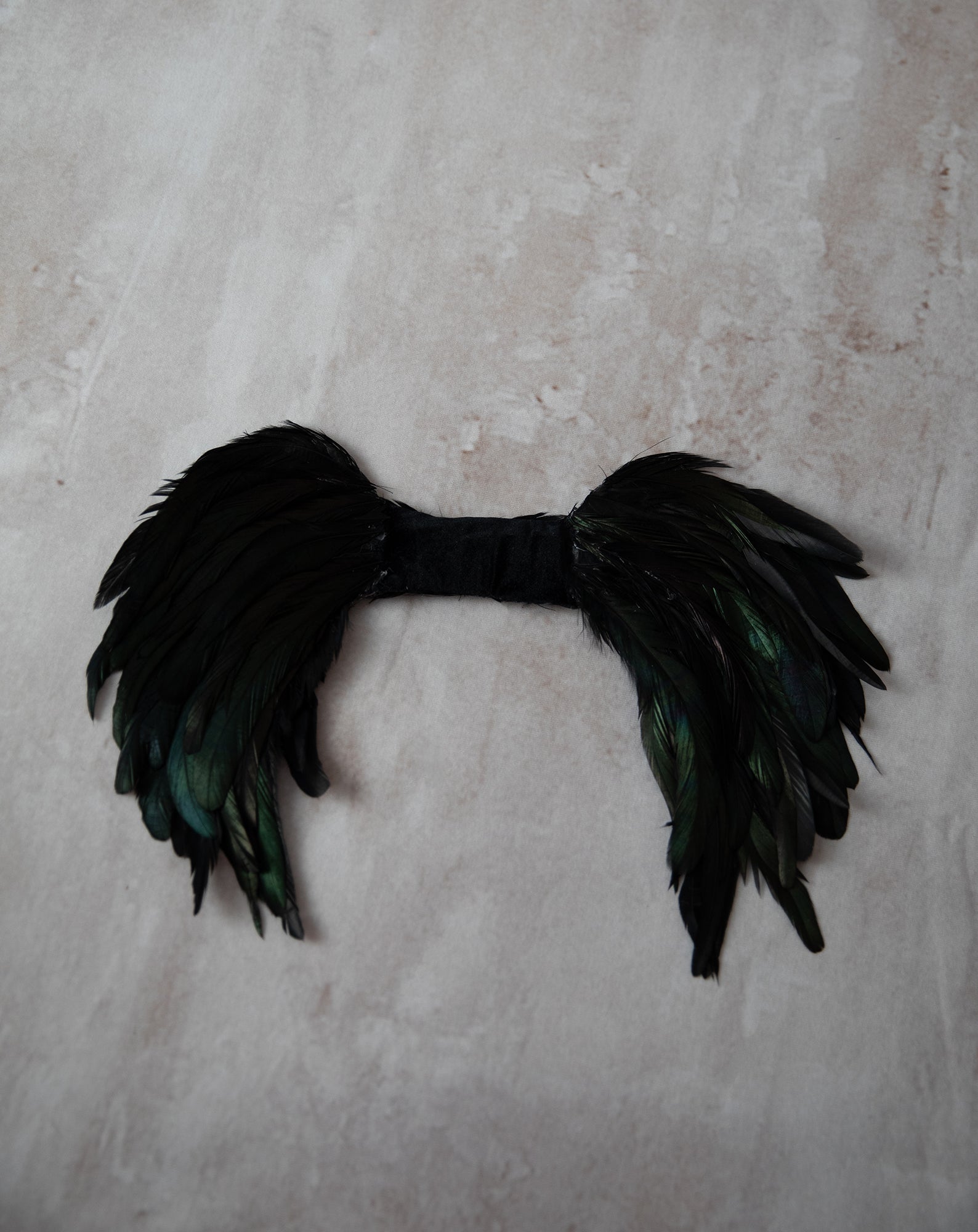 Due to the custom handmade nature of this product will vary. Kyndra Jade will combine and place the feathers to the artists' preference. Each angel wing is handmade by Kyndra Jade in our Kansas City Studio. If you would like to see part of the process join a livestream on "wing Wednesday" or "feather Friday".