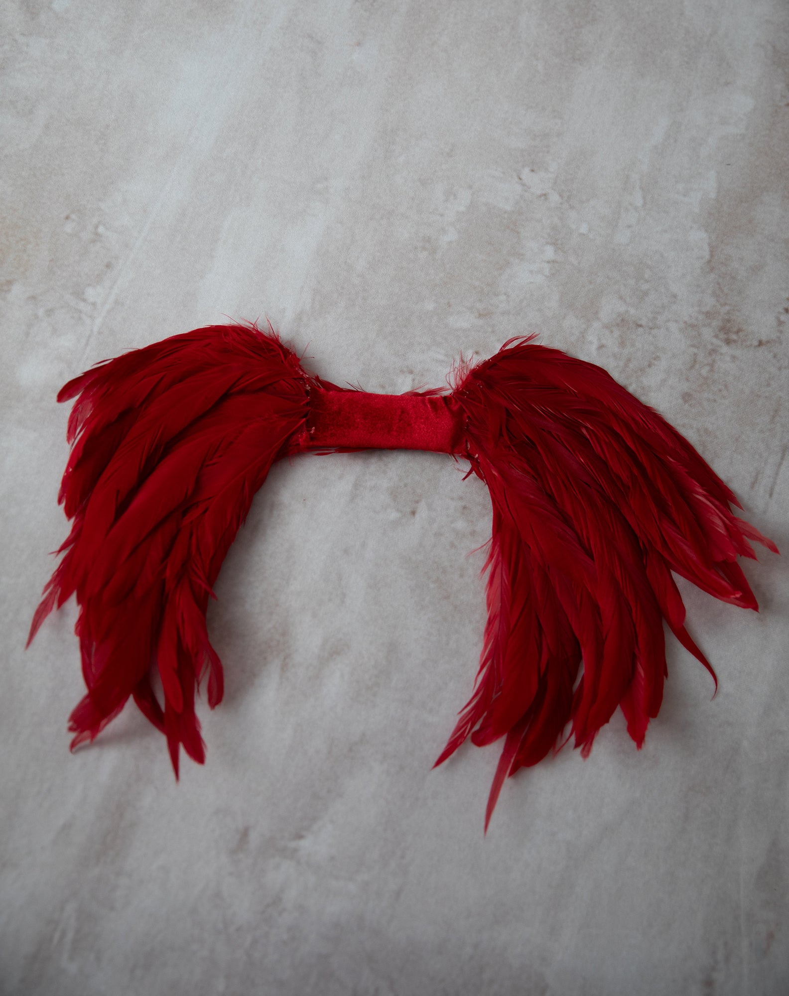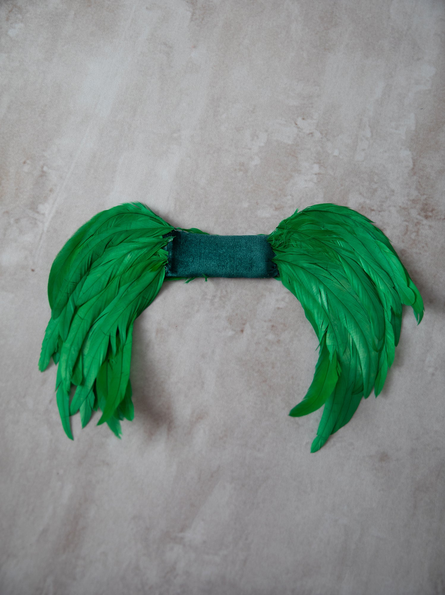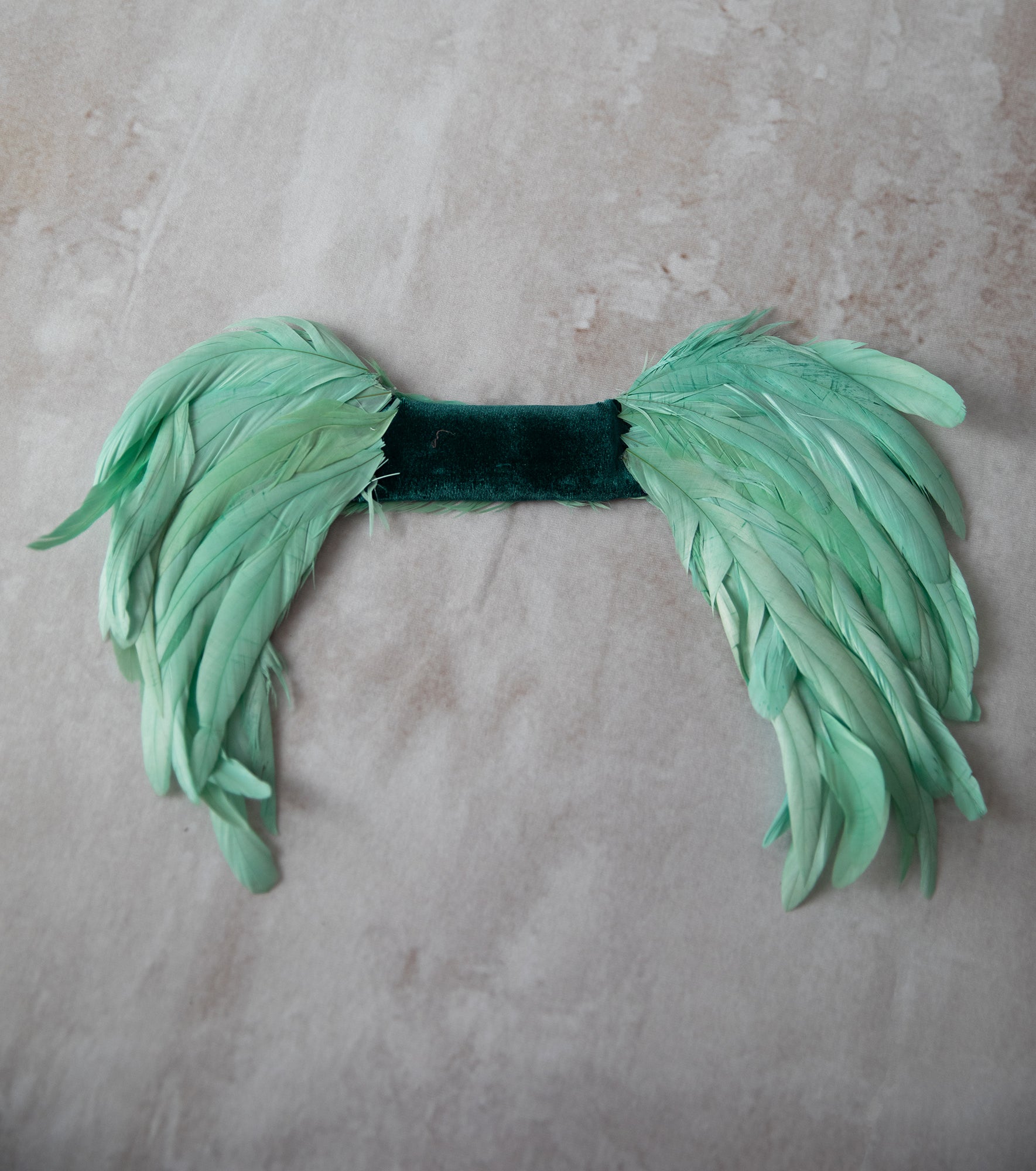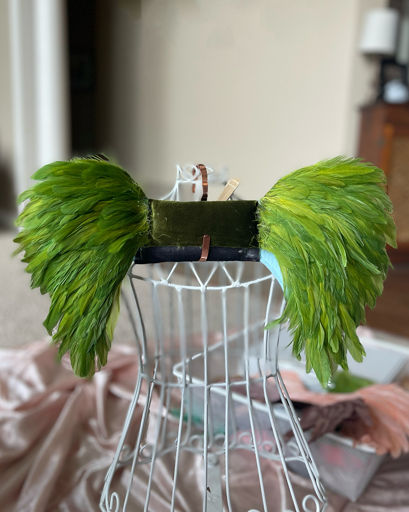 Due to the custom handmade nature of this product will vary. Kyndra Jade will combine and place the feathers to the artists' preference. Each angel wing is handmade by Kyndra Jade in our Kansas City Studio. If you would like to see part of the process join a livestream on "wing Wednesday" or "feather Friday".