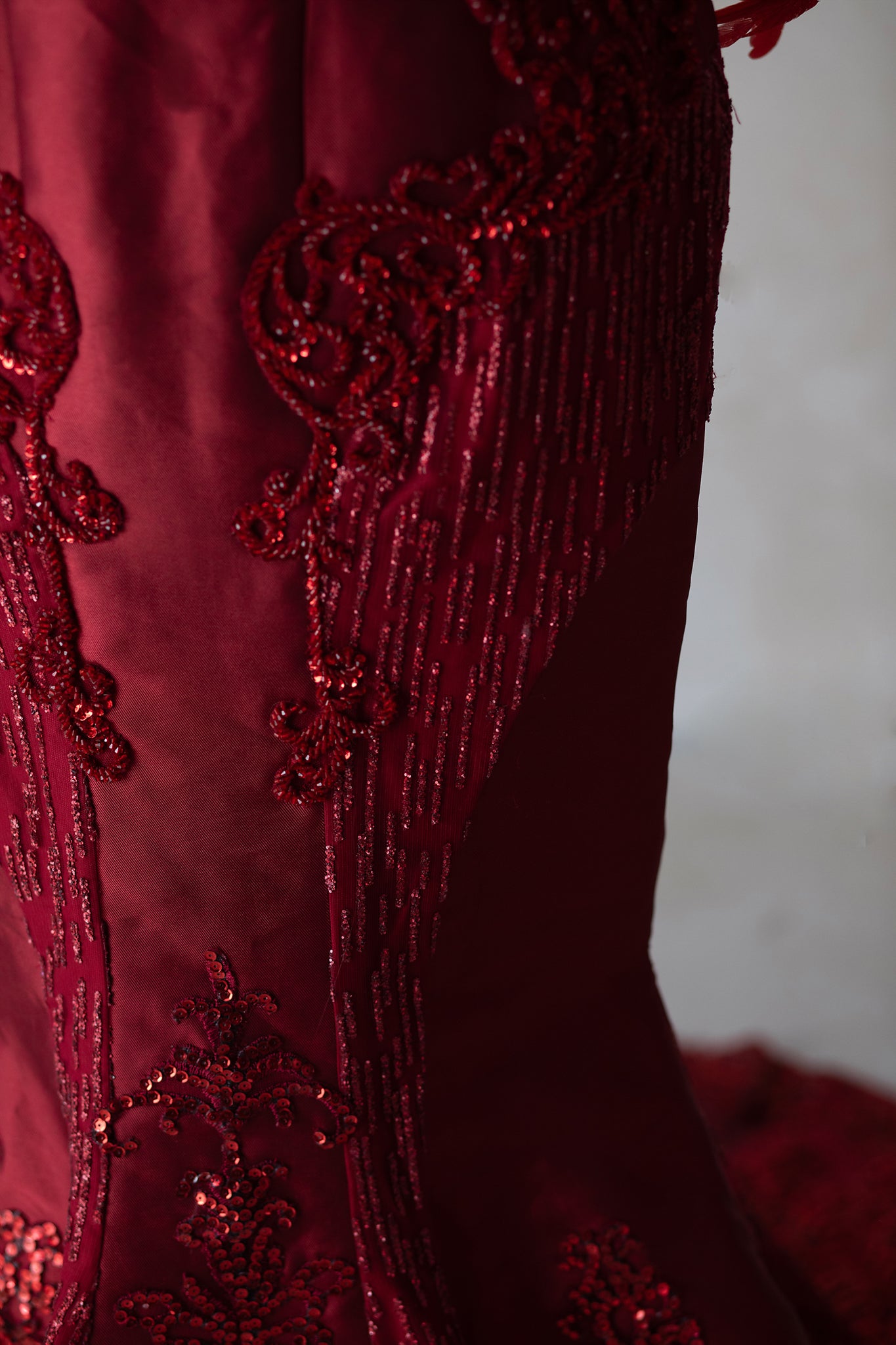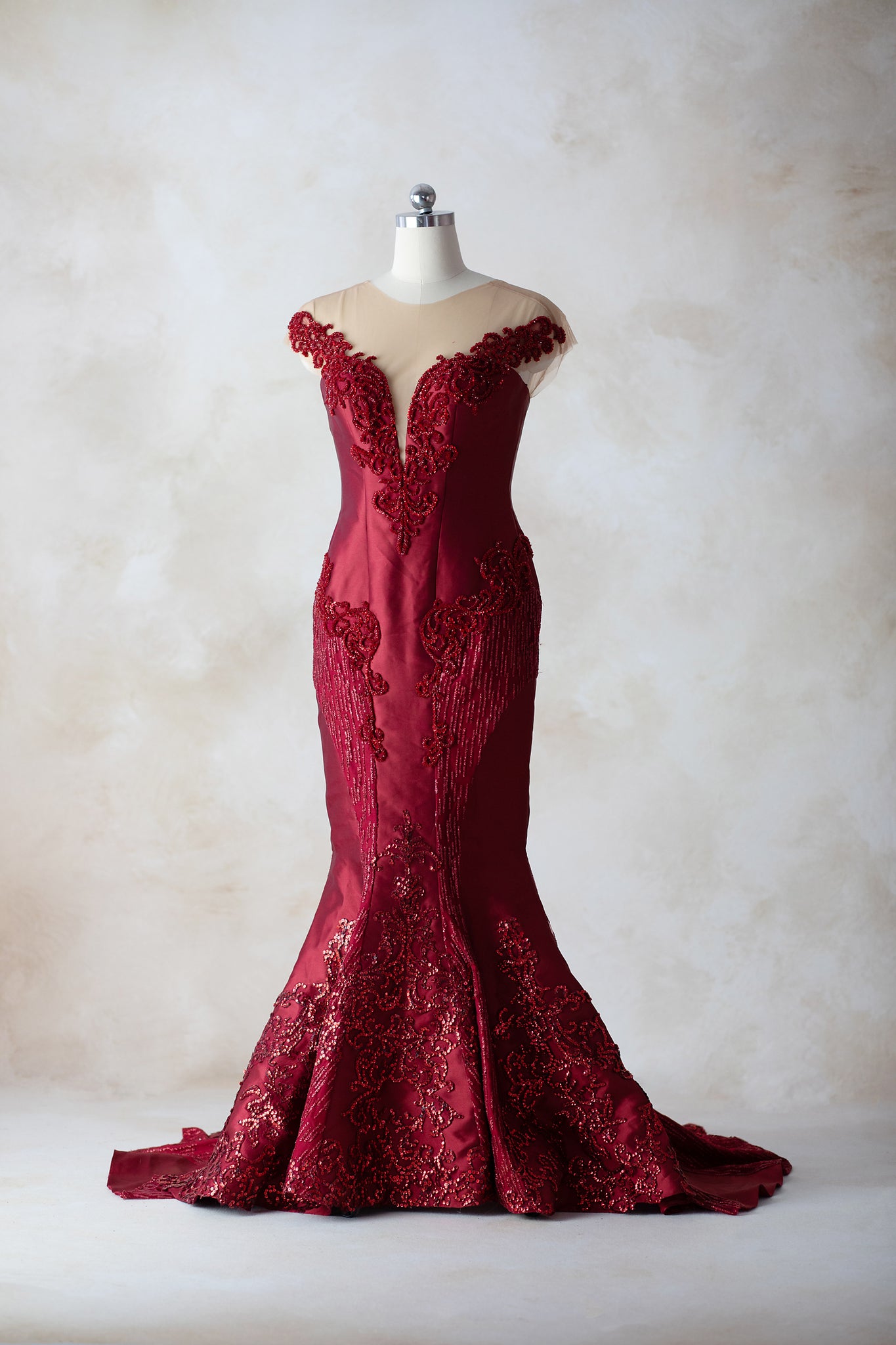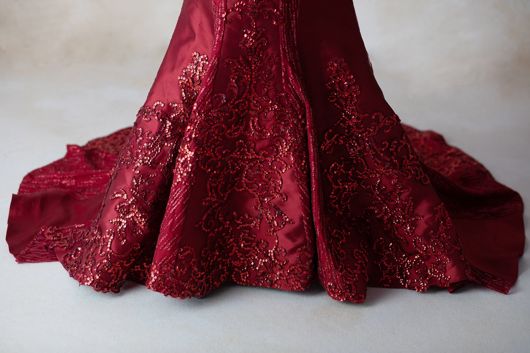 Cindy Gown in Size 12. Missing a few red sequins on the bottom. Sample Gown. Final Sale