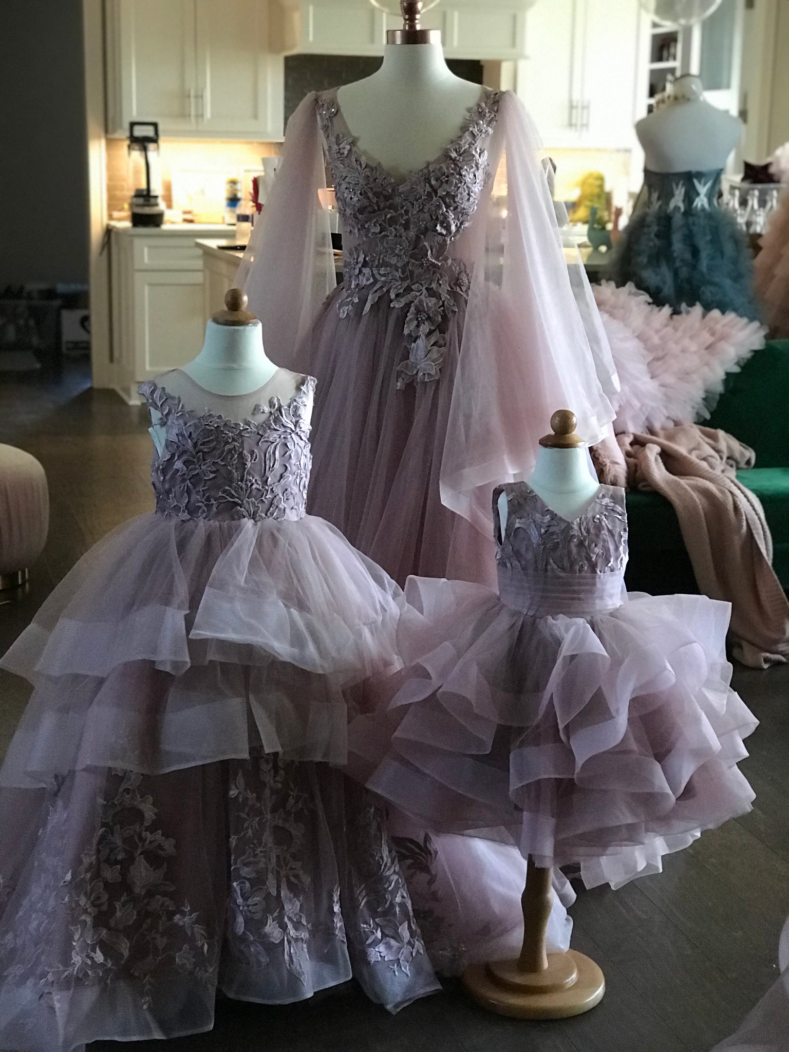 This sweet set was made for you know that year. 3 different sister looks to match the Linda Gown. The mom sample is listed separately and available in the sample sale.