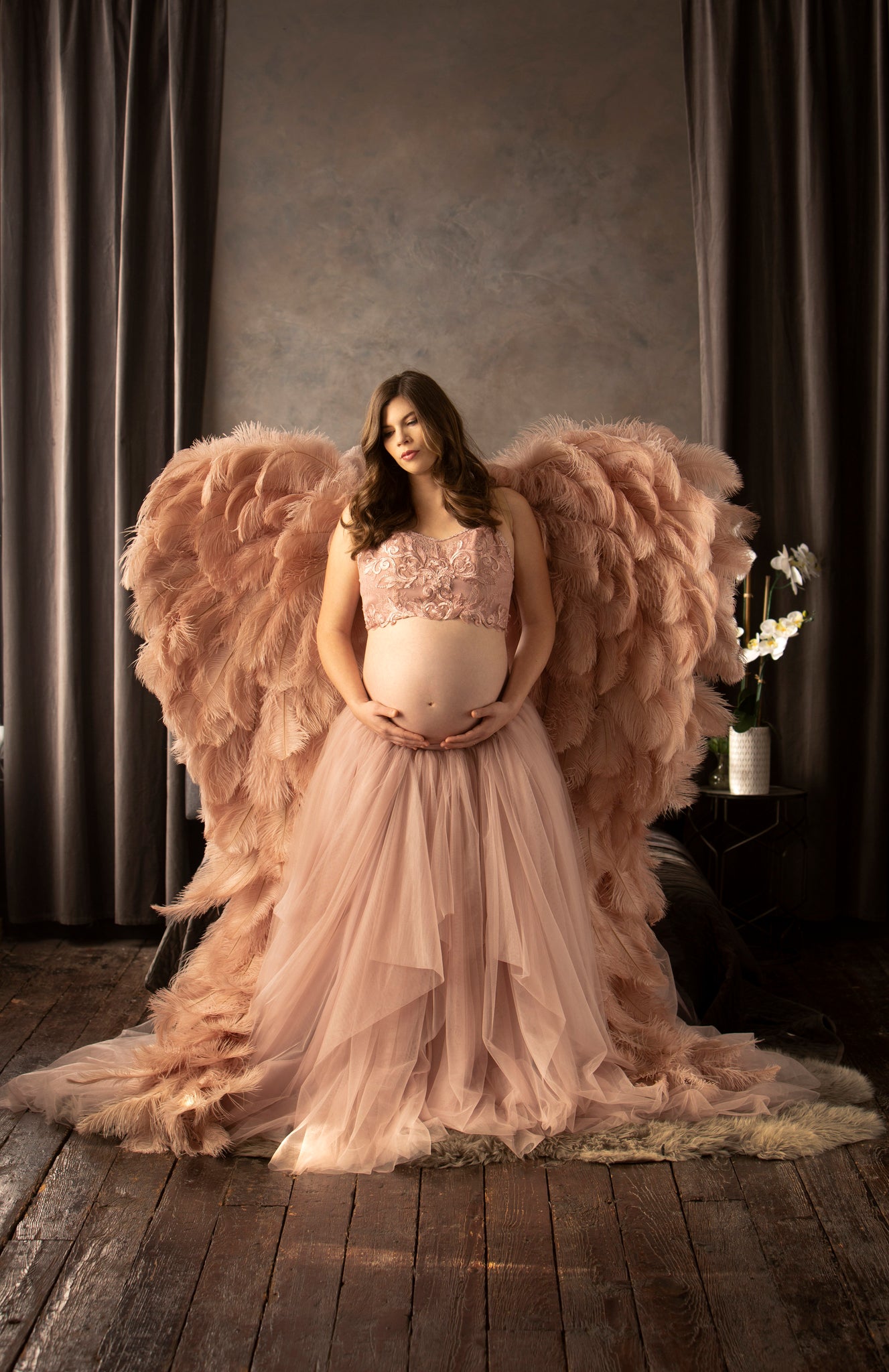The Mya Portrait skirt is made for photographers and portrait sessions. The extra long 78" train, layers of American tulle and soft draping at the waist add depth.  This skirt has a matching mommy and me skirt Marie Skirt. Custom sizes and colors available.  Top Shown sold separately.