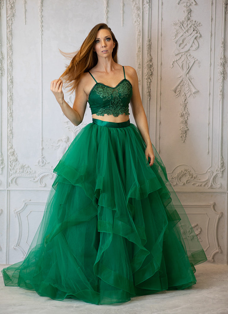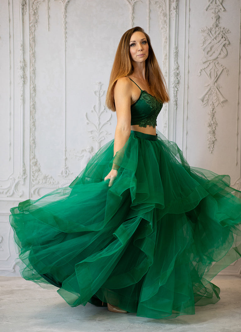 The Noel Skirt is a stunning tulle skirt ready for a twirl worth experience.. Shown in emerald green tulle, polyester satin lining and zipper for the perfect twirl worthy skirt.