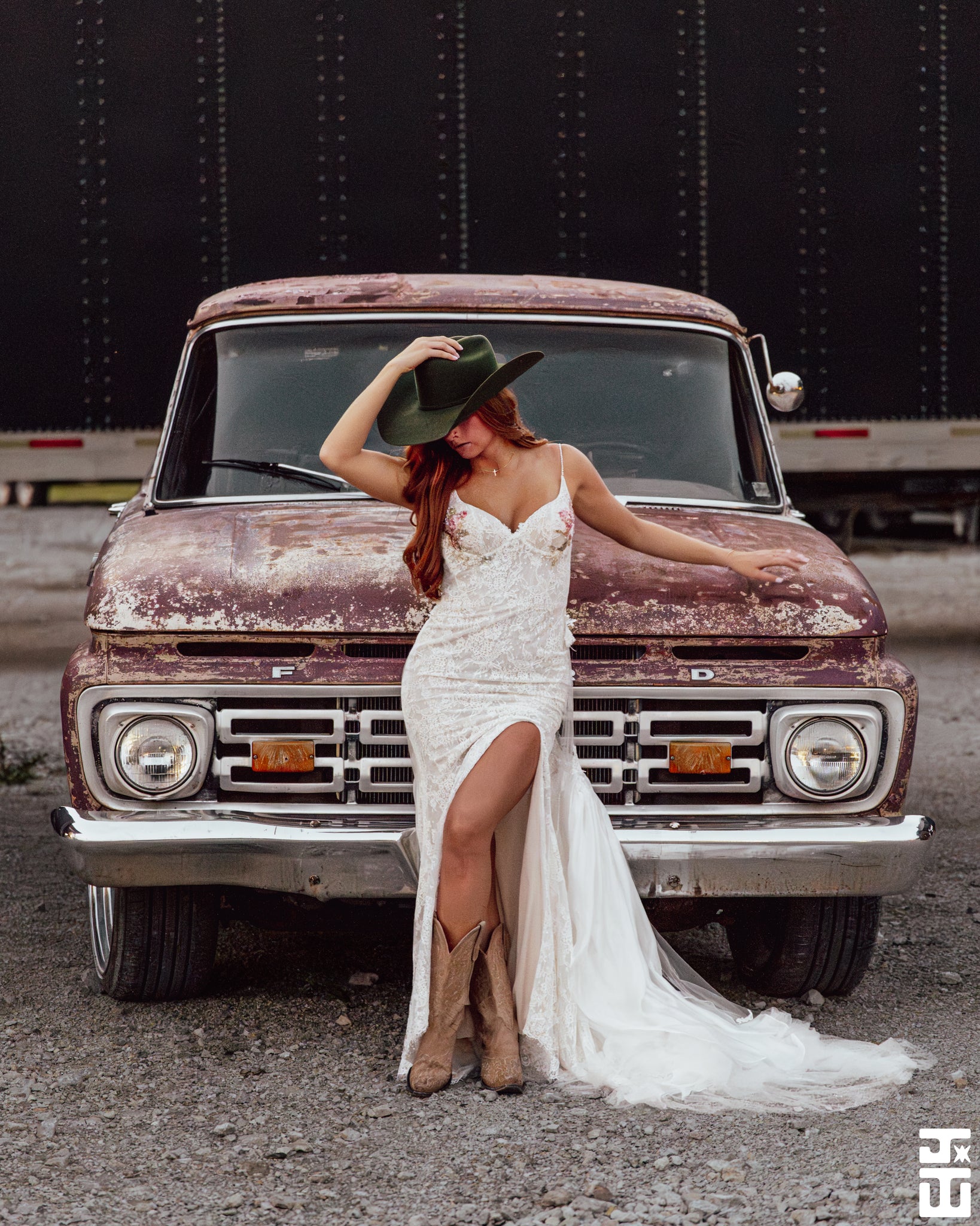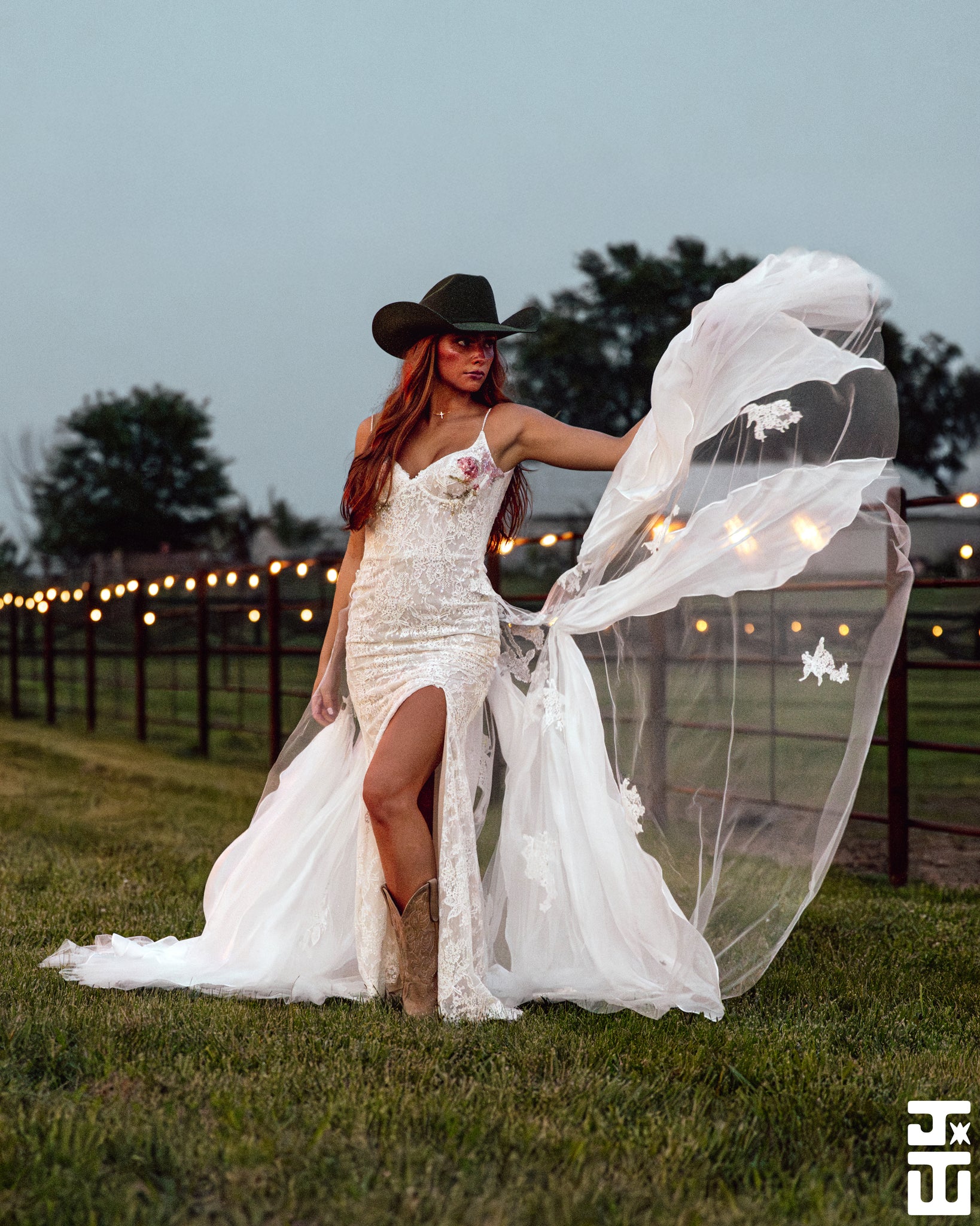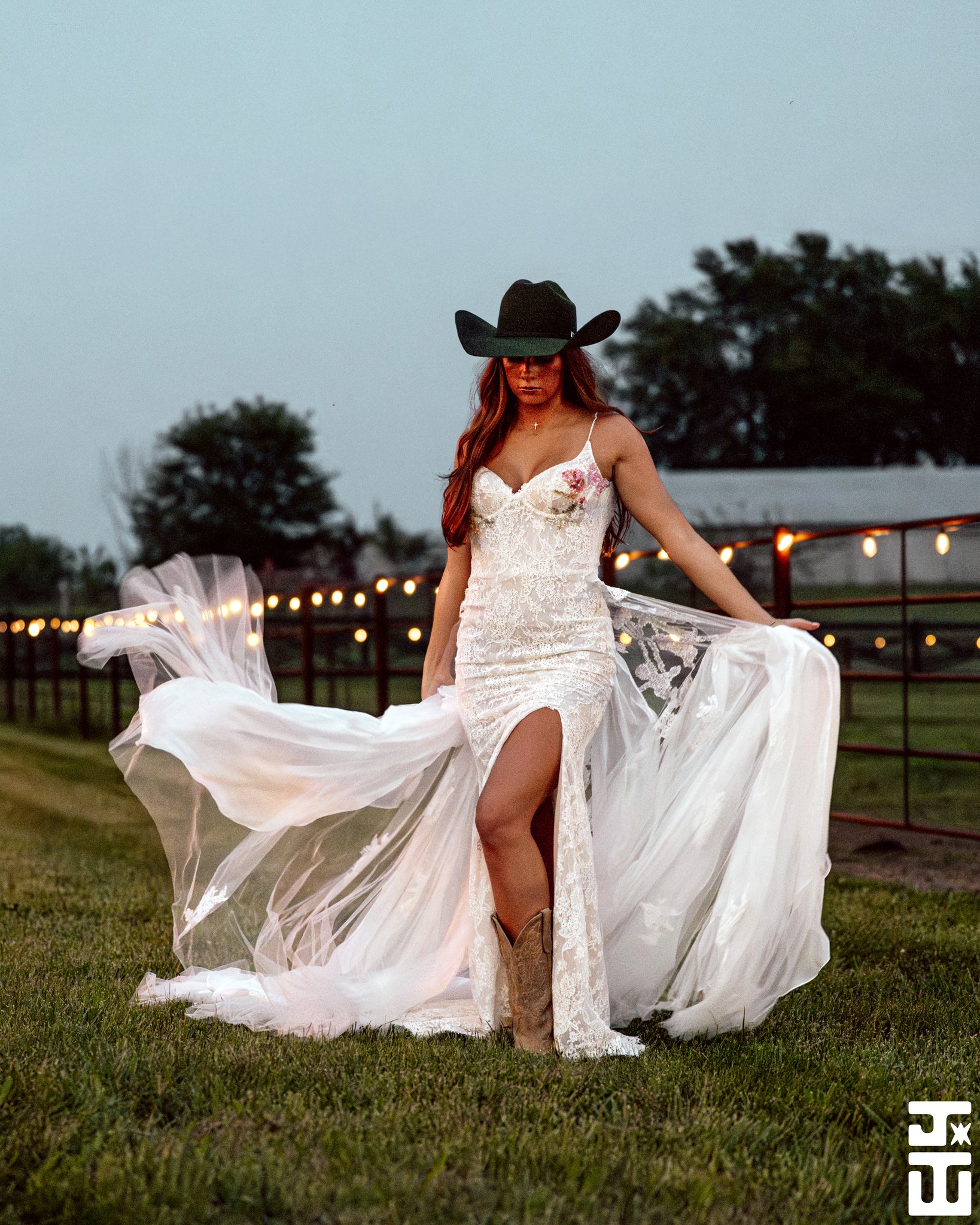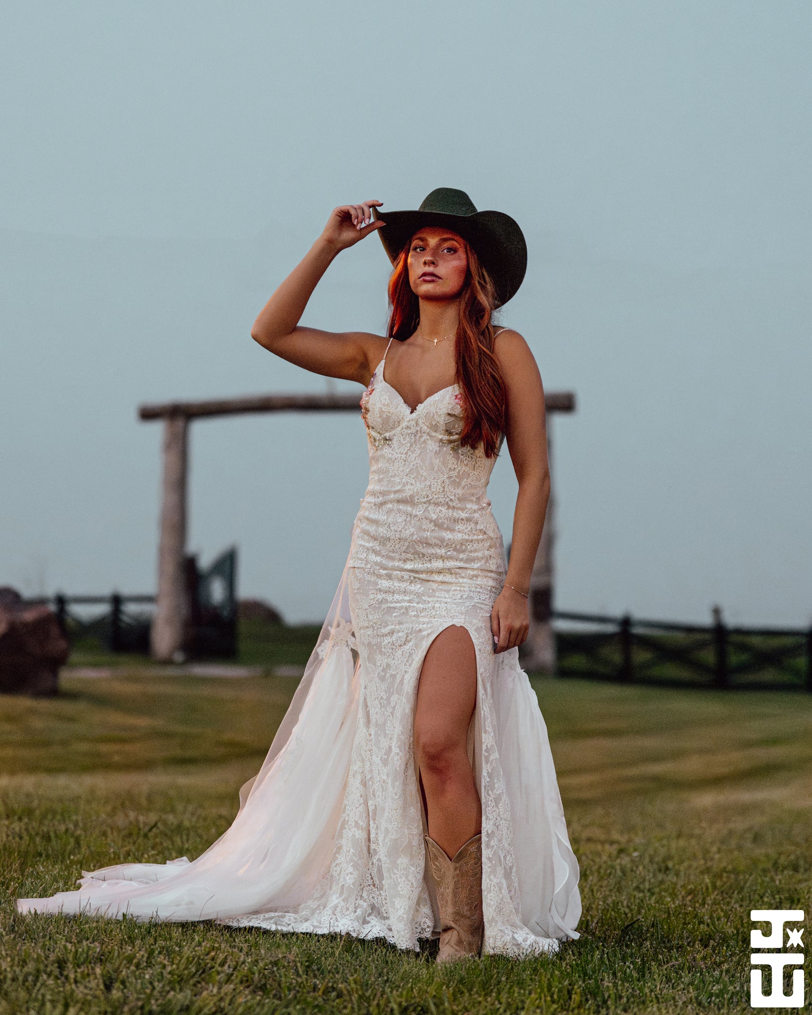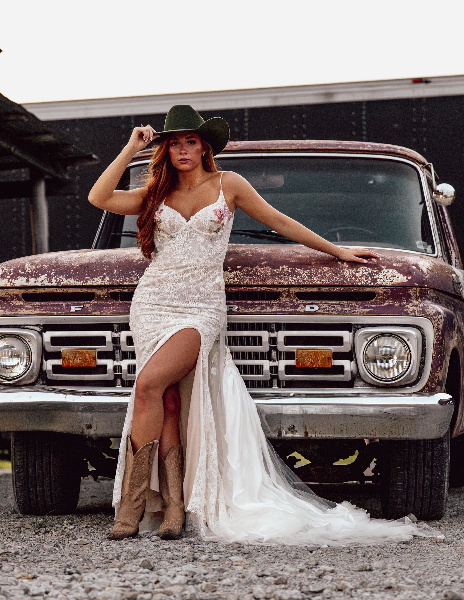 Nicola Gown is a custom made to order gown. A lace gown with elegant slit and small train. Hand sequin floral on the cups. Low back with zipper closure. Alluring removable snap on train adds an alluring element for your ceremony and detach to dance the night away.