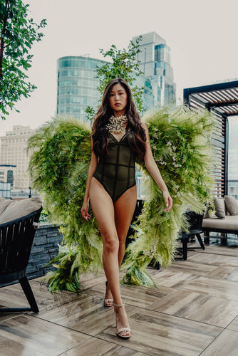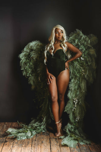 Jenna Bodysuit is a stretch crushed velvet with plunging neckline with wired cup and lace up corset back. Bodysuit is a thong and features a snap crotch. Wear alone or pair with jeans!! The Jenna bodysuit is in stock and ready to ship.