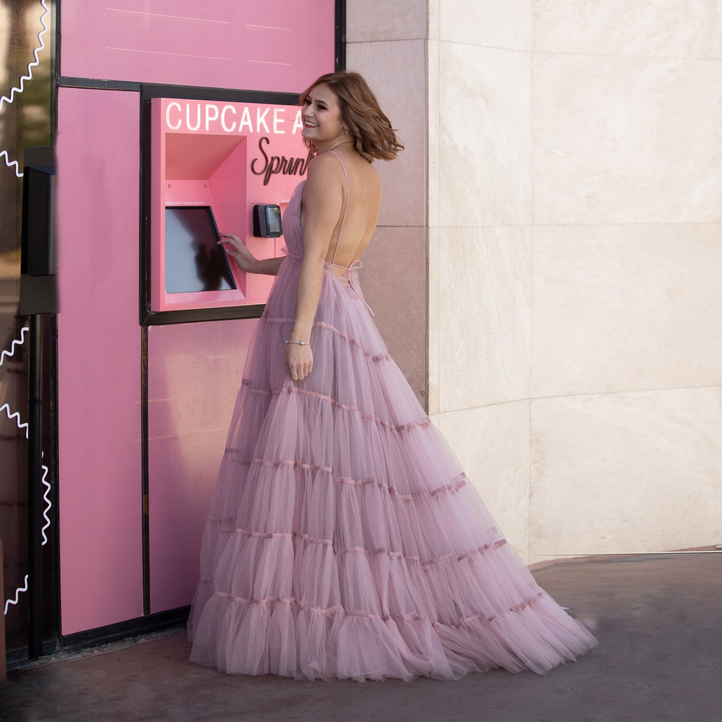 I designed this gown in May 2020, I was feeling very restless and overwhelmed by my life circumstances changing. It's not a new concept but it's a first for the Kyndra Jade collection, I loved this challenge. This adjustable back gown allows for it to fit size 0-8, 8-16, or custom. All of our gowns are extra long and flowy, this gown features ties to adjust to your modest along with an elastic back to accommodate a size range. There is no lining. I can imagine this in so many ways! Shown in our signature Rose Mauve. All gowns are made to order and take 4-.6 weeks after final measurements are confirmed. Can be made in custom colors